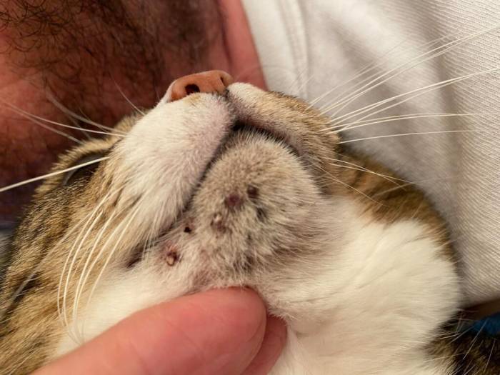 Как предотвратить появление прыщей у кошек на подбородке