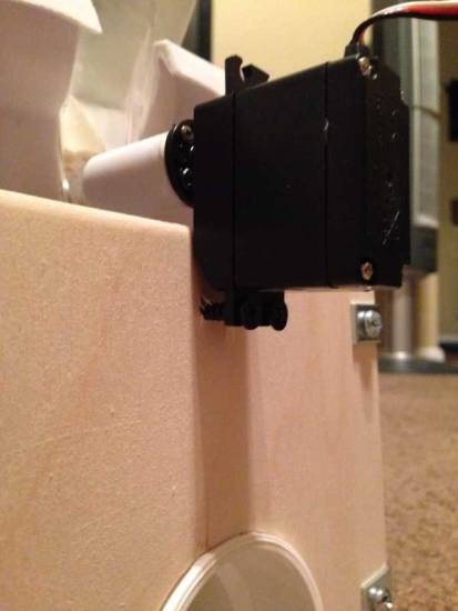 Теперь, когда основная часть работы завершена, можно зафиксировать сервопривод, чтобы он оставался на месте во время эксплуатации. Я использовал два винта для дерева и прикрепил сервопривод через отверстия непосредственно к деревянной поверхности.