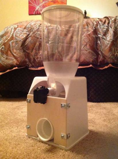Сначала я планировал собрать все на скорую руку, но по мере размышлений проект становился все более сложным. Тогда мне пришла в голову мысль: «Существуют ли уже готовые решения для дозирования, которые были бы недорогими и легко модифицируемыми?» И вот, на рынке есть готовые дозаторы корма, которые можно просто адаптировать и подключить к механизму.