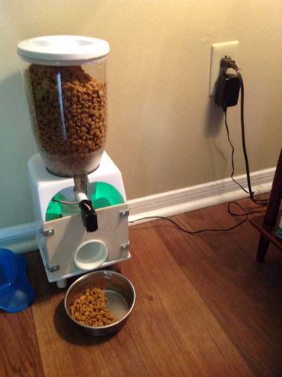 На фотографии вы видите готовый результат. Проект обошелся в $39.18 (примерно в 2300 рублей). И я надеюсь, что он вдохновит вас собрать свою автоматизированную кормилку для домашних животных.