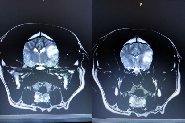 В дифференциальной диагностике следует учитывать воспалительную энцефалопатию или новообразование у собак крупных пород. Результаты МРТ могут помочь в установлении точного диагноза.