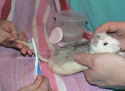 Облезание хвоста и появление на нем темных шелушащихся чешуек свидетельствует о недостаточной чистоплотности или почтенном возрасте питомца. Слишком плотные чешуйки при отставании могут травмировать кожу, провоцируя образование ран. В такой ситуации можно намочить хвост крыски мыльной водой и почистить детской зубной щеткой с мягкой щетиной.