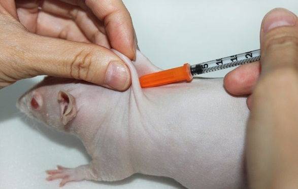 При внутримышечной инъекции следует повернуть животное мордой к себе, зафиксировать брюшко и бедро пальцами, оттянуть лапку и сделать укол. Если крыса активная и подвижная, лучше всего проводить процедуру с помощником.