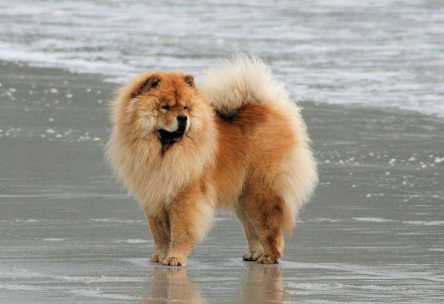 Чау-чау — одна из самых древних пород, родом из Китая. Такие животные привлекают внимание своей пышной львиной гривой, нахмуренной мордой и фиолетовым языком. Собака только выглядит как милый плюшевый медвежонок. Характер у нее своенравный и независимый.