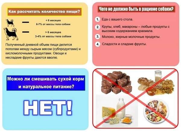 - запрещено кормить собаку с общего стола;