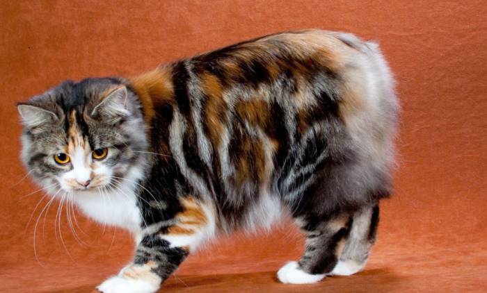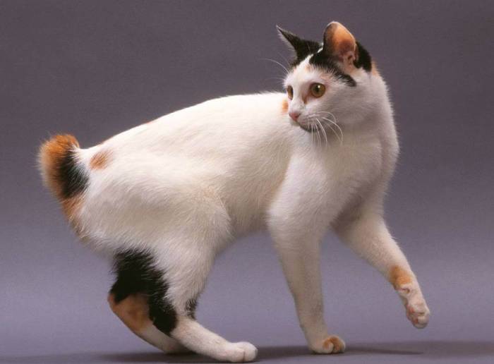 - Японские и курильские бобтейлы. Эти породы довольно редки в Европе и имеют необычные деформированные хвосты. В отличие от японских бобтейлов, курильские имеют длинную шерсть, хотя допускается и короткая, а их хвост закручен в форме «помпона».