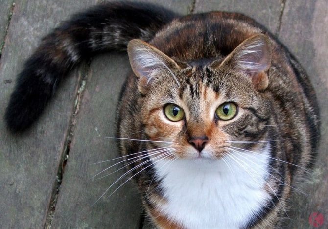 Кошка с окрасом триколор