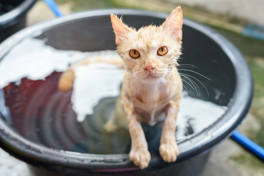 Подобранное животное купают с помощью специального акарицидного шампуня, что не только смоет уличную грязь, но и поможет избавиться от блох. Через 2 дня котенка дополнительно обрабатывают антиблошиным средством «спот он», то есть в виде капель на холку.