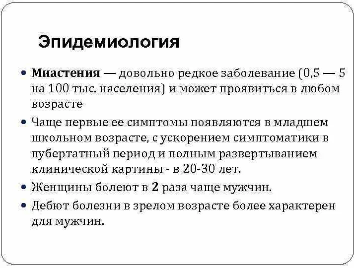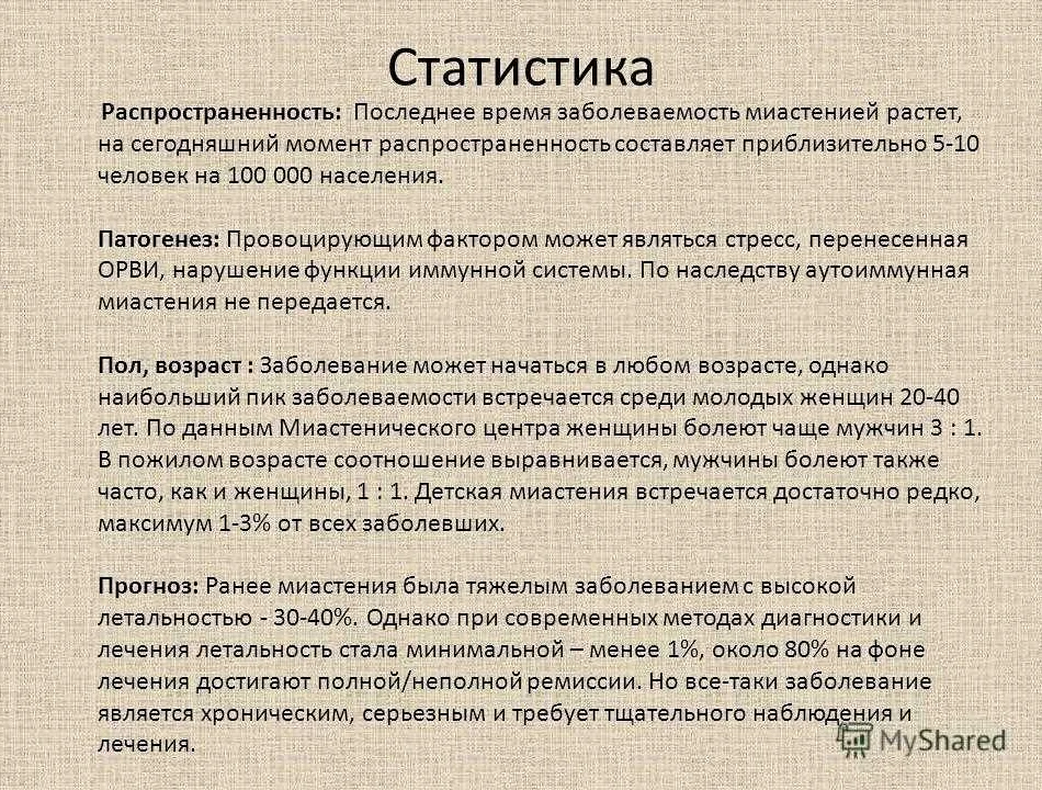 - Какие факторы способствуют развитию миастении?