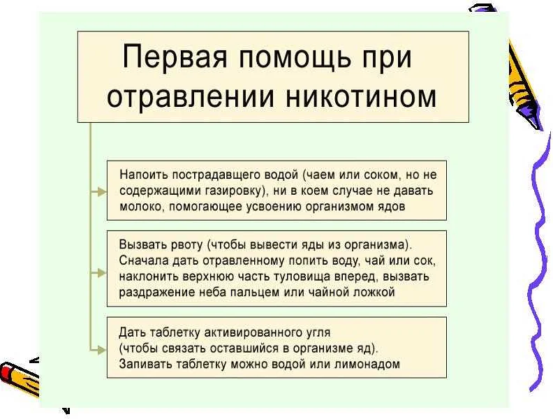В любом случае, диагностика отравления никотином требует профессионального подхода и тщательного анализа жалоб и симптомов пациента.
