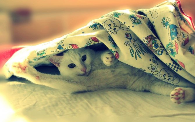 Безопасность. Кошки, будучи небольшими и уязвимыми существами, придают огромное значение своей безопасности. Мурлыка, надо признать, никогда не уснет, пока не убедится в своей полной защищенности. Обратите внимание, как кошки готовятся ко сну. Они долго вертятся и крутятся, пробуя разные позы. Иногда они прячут голову, оставляя тело «на свободе». Получается парадокс: с одной стороны, домашняя кошка знает, что в родных стенах ей ничего не угрожает. Она может удобно устроиться, например, на мягком диване в гостиной. С другой стороны, природный инстинкт шепчет: «Спрячься, так безопаснее». И кошка прячется, порой весьма оригинально. Закрывает лапкой голову, и вот вам – темно, значит, безопасно.