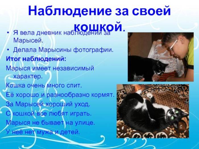 Слайд 13Наблюдение за своей кошкой.Я вела дневник наблюдений за Марысей.Делала Марысины