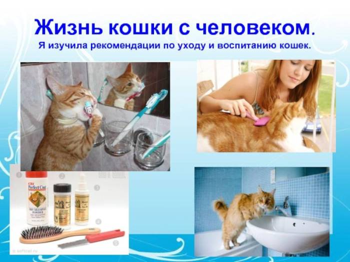 Слайд 11Жизнь кошки с человеком. Я изучила рекомендации по уходу и воспитанию