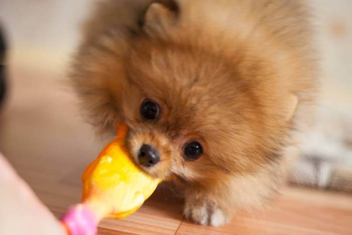 Эффективно тренироваться во время игр. Для этого отлично подойдет любимая игрушка вашего шпица. Когда собака берет ее в рот, владелец четко и громко произносит команду. Если шпиц возвращает игрушку, его поощряют чем-то вкусным.