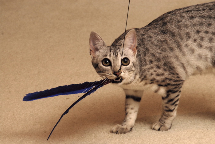 Не забудьте приобрести множество игрушек для вашей кошки. Многие представители породы мау обожают играть с водой, включая забавы в своей миске. Они прирожденные охотники, поэтому будьте внимательны, если у вас есть домашние птицы или грызуны — лучше держать кошку подальше от кормушки для птиц.
