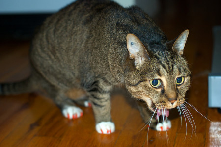 Инкубационный период длится от 3 до 5 дней. Именно в это время заразность достигает максимального уровня. После окончания инкубационного периода энтерит у кошек проявляется с выраженными симптомами и требует скорейшего лечения. Первый признак заболевания — расстройство стула. В каловых массах наблюдаются примеси слизи и крови, остатки непереваренной пищи. Что должно насторожить хозяина: