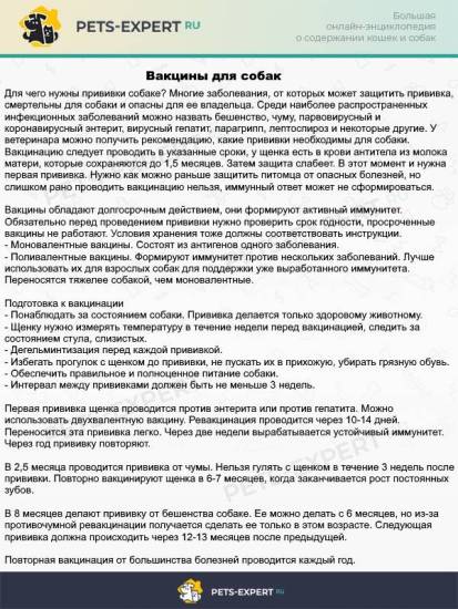 | Схема вакцинации | Первичная вакцинация щенков, ревакцинация взрослых собак | Определяет график прививок для формирования стойкого иммунитета. |