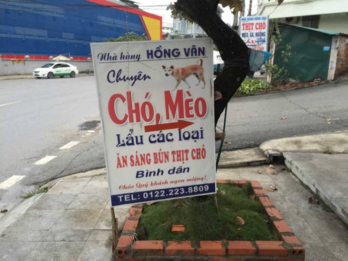 В том же районе Мёндон можно увидеть волонтеров с плакатами, призывающими отказаться от употребления собак в пищу. Как вы думаете, стали бы они там дежурить, если бы собачьи блюда не пользовались популярностью?