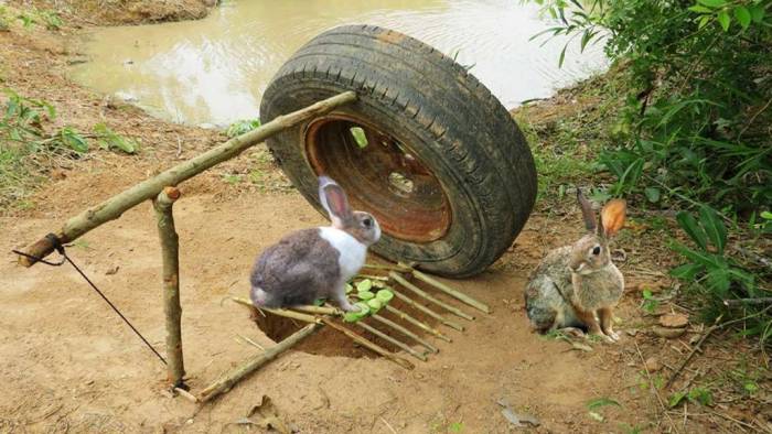 Чтобы не использовать капканы, которые навредят здоровью животного, следует обратиться к более гуманным способам. Для ловли дикого кролика достаточно сделать и применить одну из четырех предлагаемых конструкций.