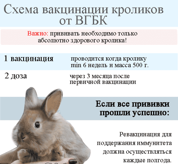 Вакцинация против миксоматоза и ВГБК осуществляется по следующему алгоритму: