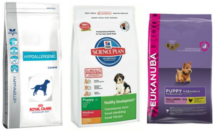 Как правило, лечебные сухие смеси выпускают известные производители — Royal Canin, Hills, Eukanuba и т.д. Корма, не вызывающие аллергической реакции у собак, чаще всего относятся к премиум и экстра-классу. Для их изготовления применяются только проверенные и высококачественные ингредиенты ,подчас относящиеся к категории Human Grade (наравне с качеством продуктов для людей).