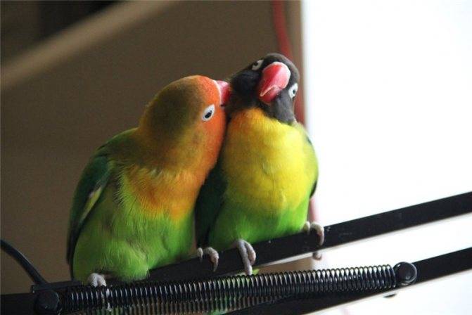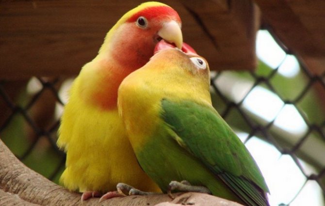 Что представляют собой брачные игры? Это время, когда самец активно ухаживает за своей партнершей, и она отвечает ему взаимностью. Птицы выщипывают друг у друга перья, долго чирикают, словно ведя беседу, и целуются. В этот момент в клетку помещается гнездо, которое самка сразу начнет обживать, если готова к выведению потомства.
