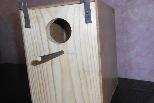 Размеры гнезда для попугаев неразлучников. Чтобы сделать гнездовой ящик, нужны сухие доски от 2 до 3 см толщиной. Дно должно быть примерно равно 17 см в длину и ширину, высота 25 см. Если площадь будет меньше, то птенцам будет тесно, некоторые из них могут быть раздавлены. Леток делают на расстоянии 3 см от крышки размером примерно 5 см. Крыша делается односкатная. Все детали закрепляются шурупами или гвоздями. Подбирая размер гнезда для неразлучников, главное учесть, чтобы птица могла свободно входить в гнездовье и помещаться там вместе с птенцами. Внутри гнезда для неразлучников дерево должно быть шершавым, чтобы попугаю было проще выбираться наружу. Лучше всего прикрепить деревянную рейку в качестве ступеньки. Можно прикрепить кусочек металлической сетки.