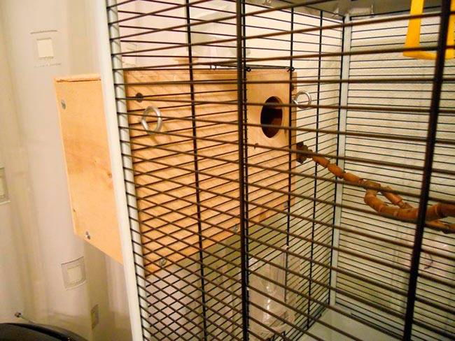 Существует два способа установки домика для размножения волнистых попугаев: снаружи клетки или внутри. Первый вариант подходит для клеток небольших размеров, однако второй считается более предпочтительным. Гнездо крепится к прутьям. Чтобы разместить домик внутри клетки, желательно, чтобы у нее было две двери. На одной из дверей и прикрепляют гнездо. Домик для волнистых попугаев, сделанный своими руками, требует надлежащего ухода.
