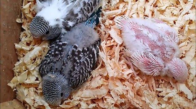 То же самое они могут делать и в домашнем гнезде. Поэтому вначале лучше всего насыпать небольшое количество мелких опилок. Уже после того, как появятся птенцы, вы можете насыпать крупных опилок. Хватаясь за них, птенцы будут разрабатывать лапки.