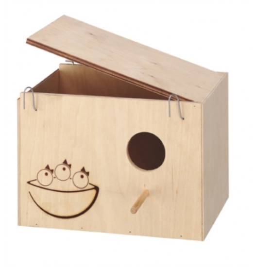 Для разведения птенцов могут применяться дуплянки или гнездовые ящики. Они бывают вертикальными и горизонтальными. Гнездовое устройство подвешивается на расстоянии не менее 30 см от угла и на 20 см ниже верхней сетки. Можно купить гнездо для неразлучников, сейчас есть очень большой выбор. Можно сделать гнездо для неразлучников своими руками.