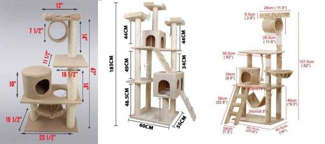 Перед началом работы важно тщательно продумать конструкцию будущего изделия. Она должна быть надежной и безопасной для вашего питомца. В качестве основы для комплекса используются три элемента, размеры которых указаны на схеме.