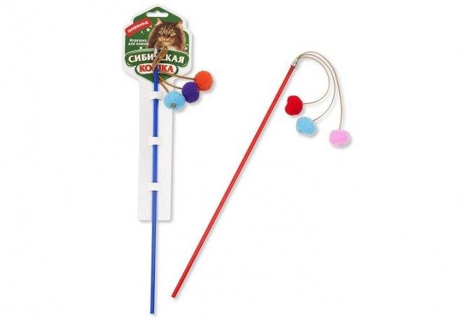 Эти игрушки являются одними из самых любимых у кошек. Удочка состоит из палки, на конце которой могут находиться перья, шнурки, бахрома и другие элементы.
