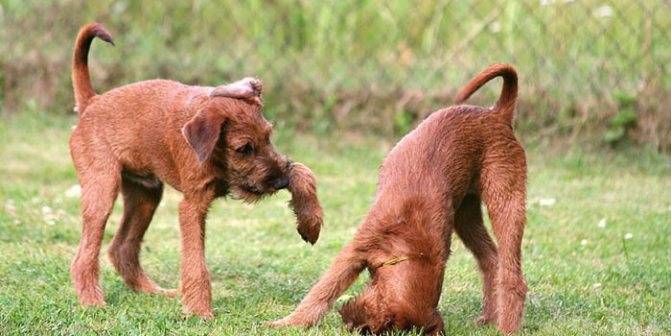 Бытует мнение, что собака ирландский терьер склонна выяснять отношения со своими сородичами. Изначально все щенки добродушные, и любят играть друг с другом, но врождённую общительность и добродушие собаки нужно поддерживать. В отношениях с питомцем кинологи советуют найти золотую середину – воспитывать, но не баловать.
