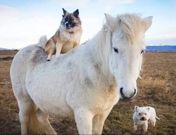 Важно! В 1972 году порода отнесена FCI к сторожевым и пастушьим собакам. Исландская овчарка не побоится прокатиться на спине лошади. Исландская овчарка не побоится прокатиться на спине лошади
