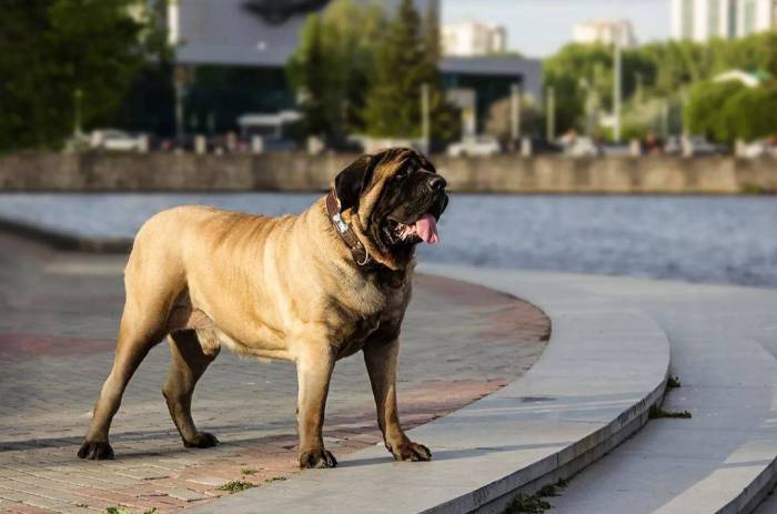 Общепринятое название этой породы – Английский мастиф. Он считается самой крупной собакой в мире по соотношению роста и веса. Эти собаки относятся к числу первых молосских пород, появившихся на европейском континенте. Их использовали как гладиаторов на аренах, в собачьих боях, а также в качестве рабочих и охранных собак. Позже англичане начали обучать мастифов охоте, и они стали травильными собаками, которые группами нападали на медведей.