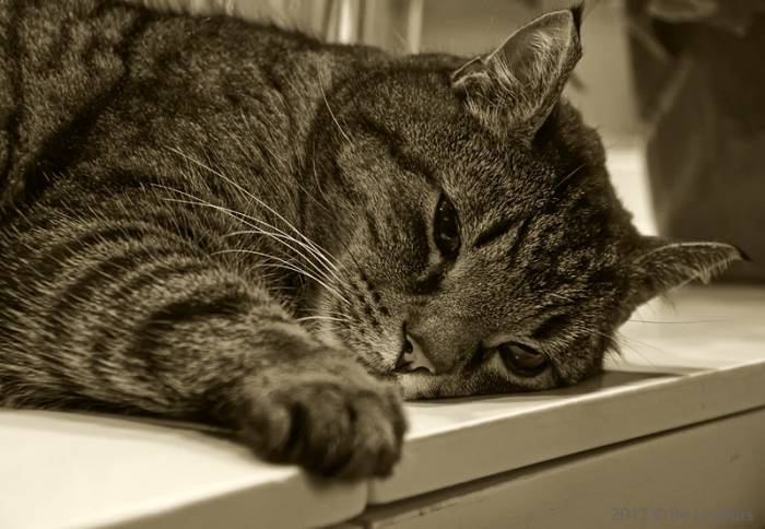 - кардинальное изменение поведения (активный кот становится чересчур спокойным, обездвиженным, всё время спит);
