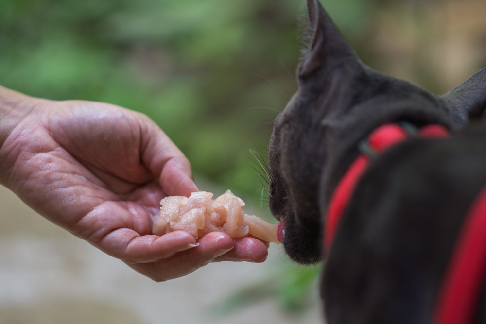 - когда животное подходит, его гладят, скармливают вкусняшку и насыпают в тарелку корм.
