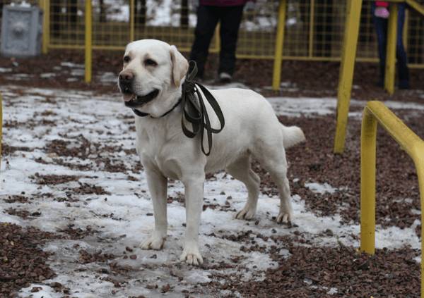 - каждый раз, когда лабрадор начинает тянуть поводок, останавливайтесь или идите в обратном направлении (собака должна понять, что натяжение поводка приводит к остановке, и сопротивление не имеет смысла).