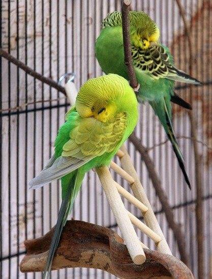 С утра и до полудня они полны энергии и активно исследуют окружающее пространство. После того как они наиграются и нагуляются, попугаи садятся на свои жердочки и погружаются в сладкий дневной сон.