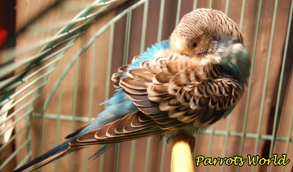 Также привычная поза волнистых попугаев для сна – это, когда попугаи, распушив перья, прячут голову под крыло или засовывают, развернувши голову к спине, свой клюв в перья. В такой позе чаще всего попугаи спят в зимнее время суток, так как это помогает им сохранять тепло.