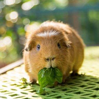 Рацион вашего домашнего питомца должен максимально соответствовать питанию его диких родственников. Свинки получают свежую траву и садовую зелень, такую как укроп, салат и шпинат. В летний период их также подкармливают дикорастущими растениями, включая клевер, люцерну, а также листья подорожника и одуванчика. Зимой можно проращивать для грызуна ячмень, овес и пшеницу.