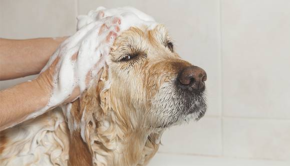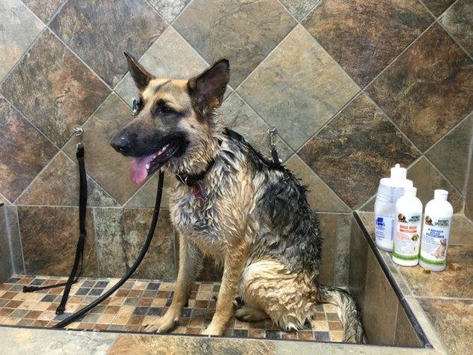 Полезный совет! Купание с лечебными шампунями (по показаниям) требует, чтобы собака постояла с намыленной шерстью несколько минут, чтобы активные вещества смогли оказать терапевтический эффект.