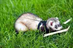 Гуляя с хорьком на улице, важно внимательно за ним следить, чтобы он не вылез из шлейки или не съел что-нибудь