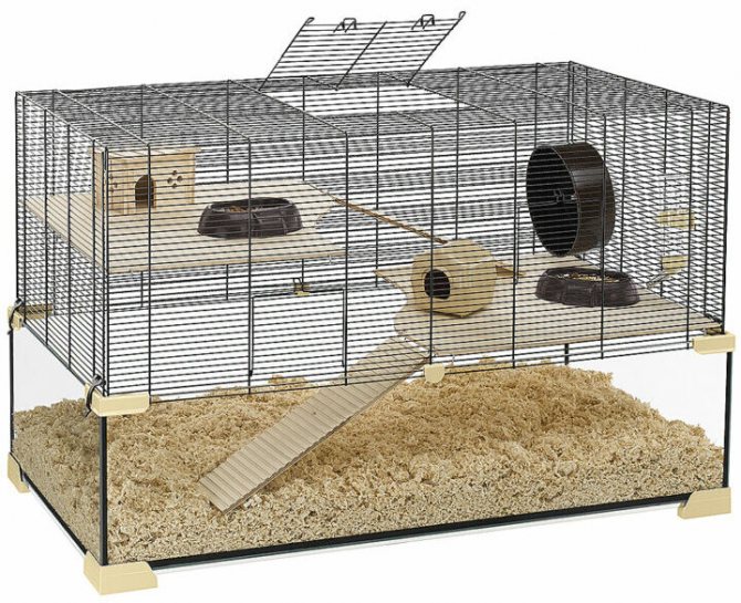 Клетку и аксессуары моют горячей водой с мылом раз в неделю.
