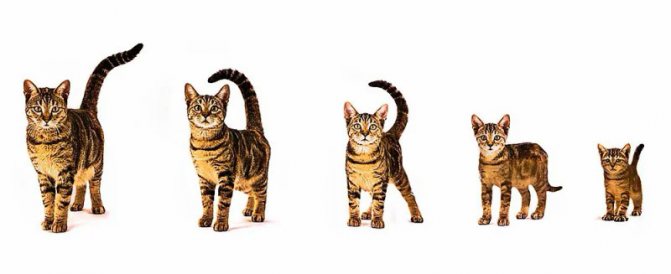 Новорожденный котенок напоминает маленького червячка, его размер с выраженным окрасом составляет около десяти сантиметров, он не слышит и не видит, полностью беспомощен. Однако уже через пять дней начинаются первые изменения: у котенка появляется слух, и он начинает реагировать на окружающие звуки. Процесс взросления идет быстро, и к трем месяцам формирование в полноценную особь практически завершается.