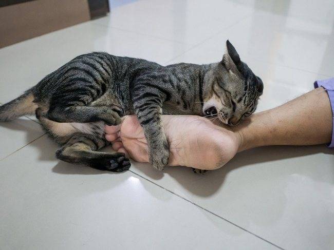Случайная травма. Часто питомцы находятся под ногами хозяев, особенно на кухне, ожидая угощения. В результате владелец может случайно наступить на лапу или хвост своего любимца. В ответ на это обиженный питомец может укусить хозяина, например, за ногу. Неловкие движения при поднятии животного также могут привести к травмам, что вызовет недовольство и агрессию со стороны кота.