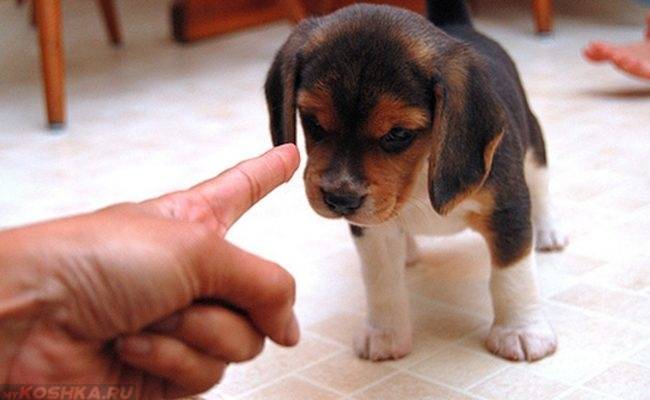 Хозяин должен дать понять собаке что он огорчён, с помощью строгого голоса.