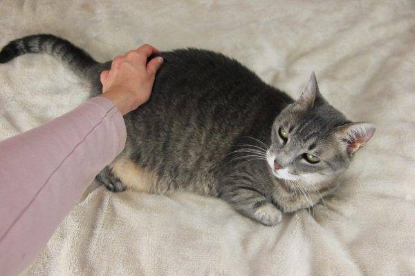 - через 40 минут следует проверить состояние живота кошки, не надавливая, а аккуратно приложив ладони по бокам и проведя вдоль бедер;