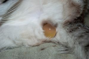 - Отхождение слизистой пробки — это прозрачный сгусток слизи. У повторно рожающих кошек этот процесс может быть незаметен, так как они часто подлизываются перед родами. У впервые рожающих питомиц хозяин может увидеть немного слизи под хвостом.