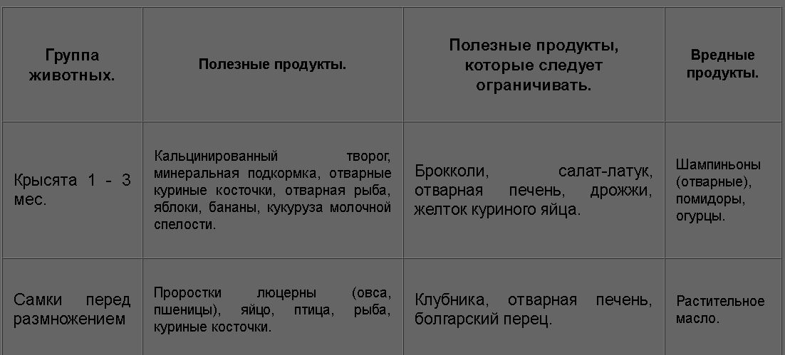 В период беременности крыса предпочитает питаться более высококалорийной пищей и не обращает внимание на то, что любила раньше. За день-два самка может вовсе перестать есть